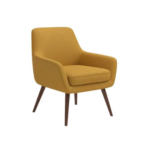 Mid-century modern armchair in mustard yellow fabric.