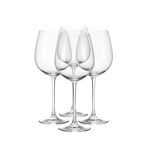 Set of 4 lead-free crystal red wine glasses.