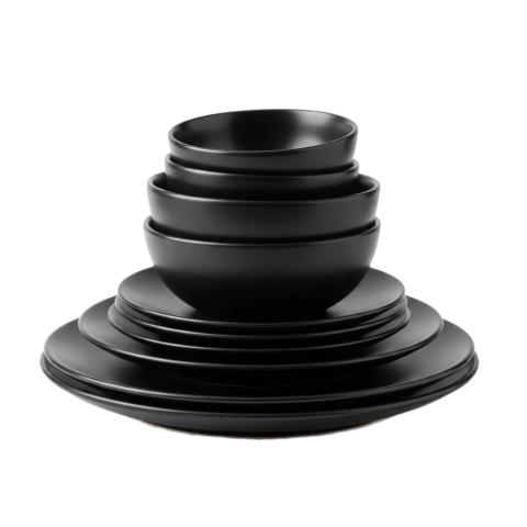 16-piece stoneware set in matte black.