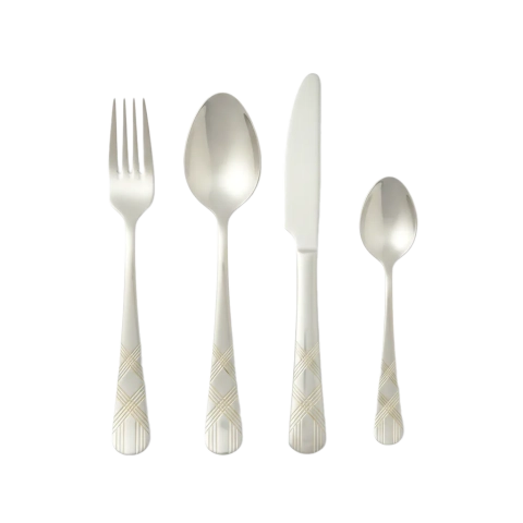 24-piece stainless steel cutlery with brushed gold finish.