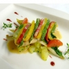 Poached fillet de veau on asparagus vinaigrette